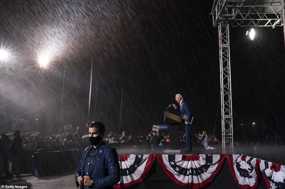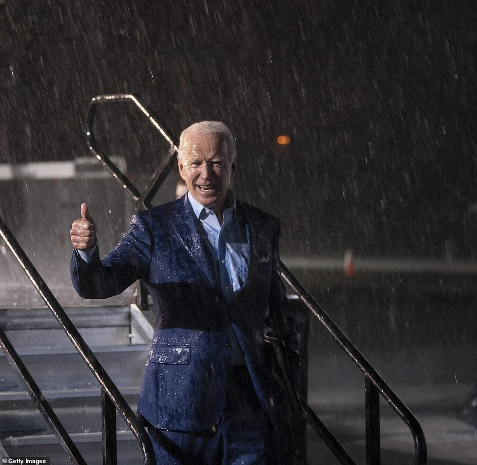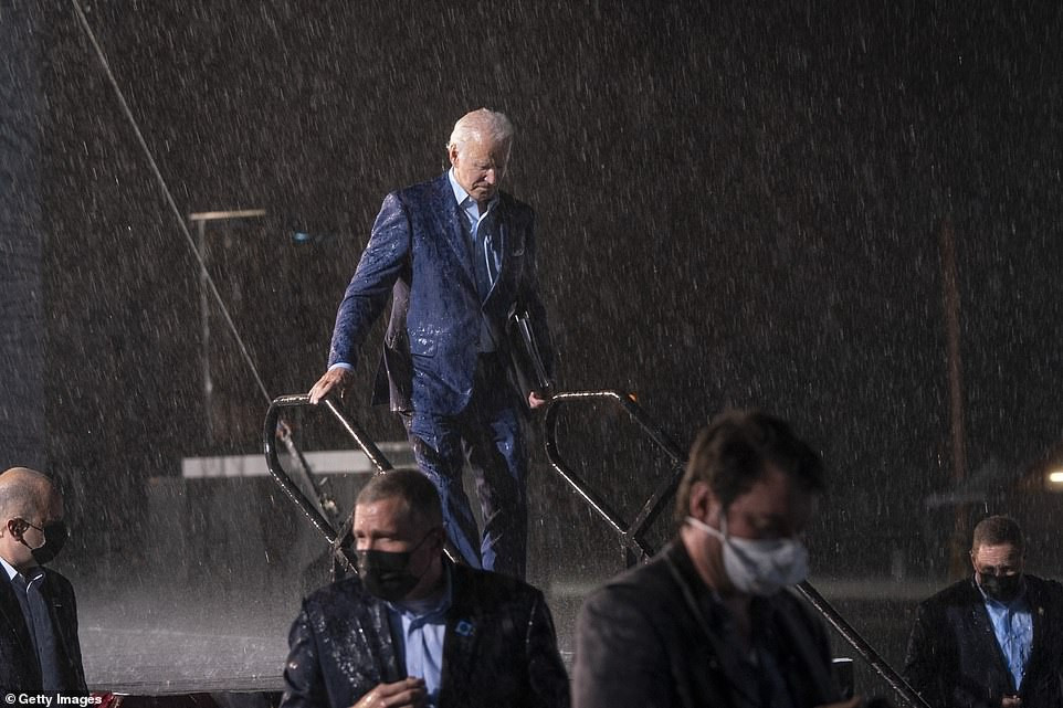 Tuy nhiên, bài phát biểu của ông Biden đã bị gián đoạn vì trời đổ mưa nặng hạt.