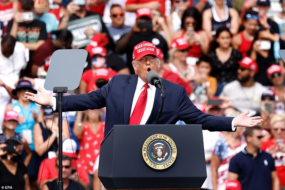Sự kiện của ông Trump diễn ra lúc 13h30 ở thành phố Tampa. Các cử tri cổ vũ náo nhiệt, đứng chen chúc mà không đeo khẩu trang.