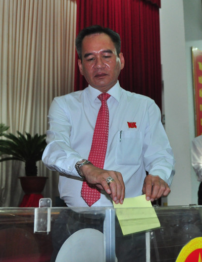 Chủ tịch UBND tỉnh Hậu Giang Lữ Văn Hùng bỏ phiếu. Ảnh: Hòa Hội