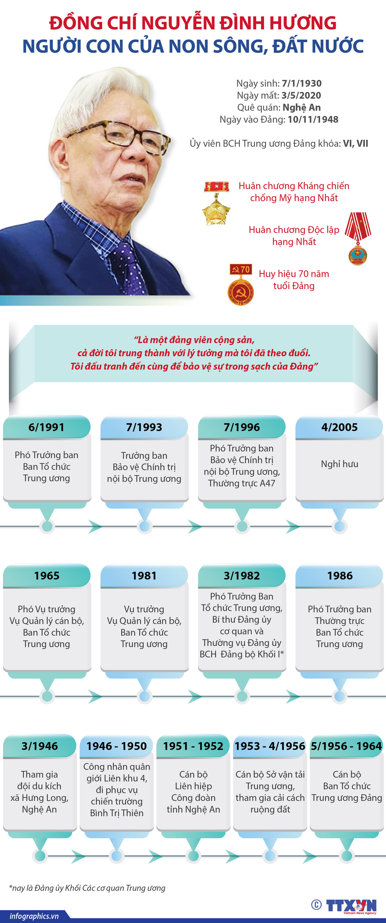 Đồng chí Nguyễn Đình Hương - Ủy viên Trung ương Đảng, nguyên Phó Trưởng Ban Tổ chức Trung ương, nguyên Trưởng Ban Bảo vệ chính trị nội bộ, một lão thành cách mạng, một người cán bộ trung kiên - đã từ trần chiều 3/5/2020.