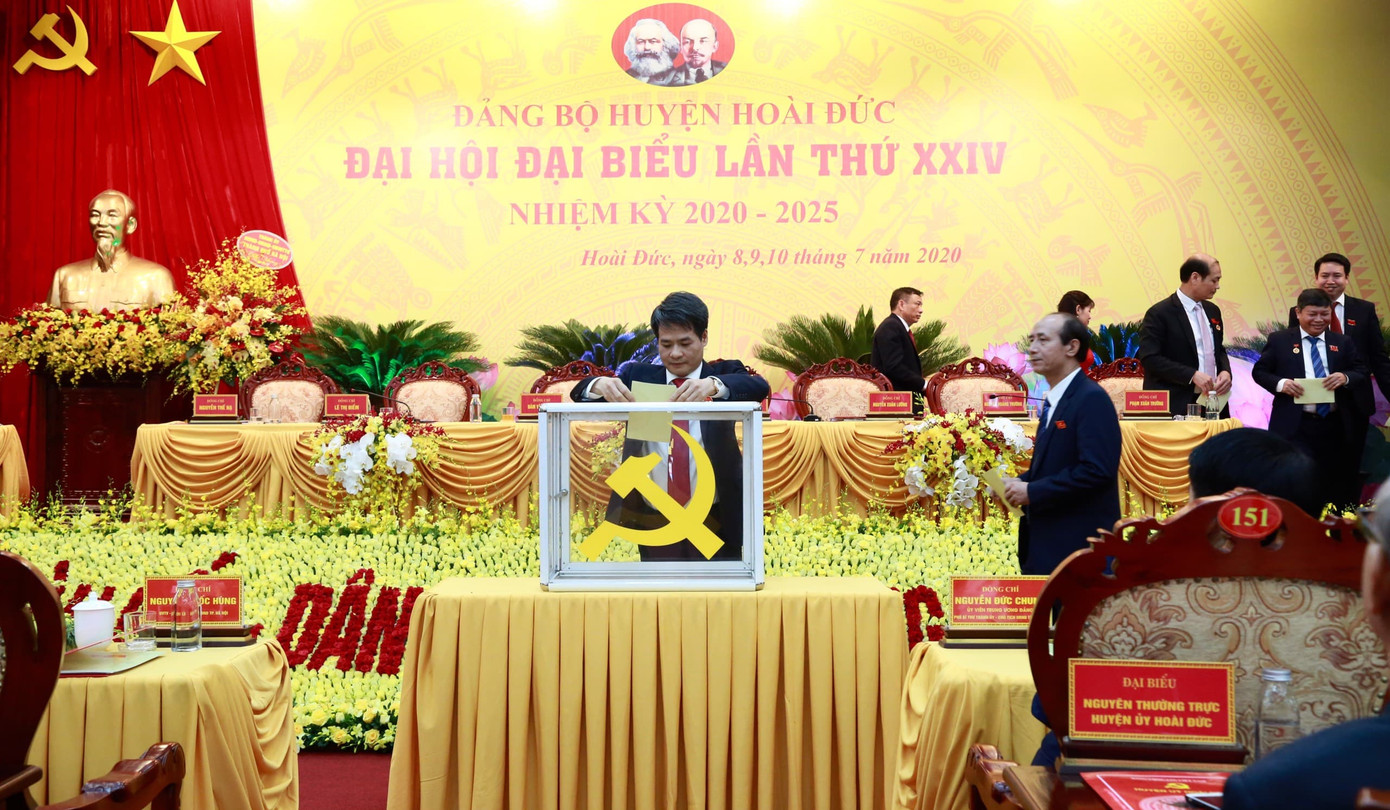 Chiều cùng ngày, Đại hội Đảng bộ huyện Hoài Đức lần thứ XXIV, nhiệm kỳ 2020-2025 đã hoàn thành công tác bầu cử Ban Chấp hành, bầu trực tiếp Bí thư Huyện ủy tại Đại hội.