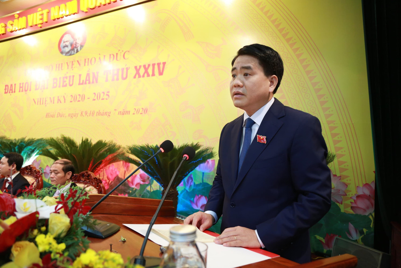 Phát biểu tại Đại hội, Phó Bí thư thành ủy, Chủ tịch UBND Thành phố Hà Nội Nguyễn Đức Chung đánh giá cao những kết quả toàn diện Đảng bộ huyện Hoài Đức đã đạt được trong nhiệm kỳ vừa qua. Trong đó, kinh tế huyện phát triển, tăng trưởng khá mức 10,8%/năm; các chỉ tiêu kinh tế xã hội đạt và vượt kế hoạch, đời sống vật chất, tinh thần của người dân ngày càng tăng. Công tác quản lý đất đai, giải phóng mặt bằng có nhiều chuyển biến; huyện đã hoàn thành 22/27 tiêu chí lên quận…