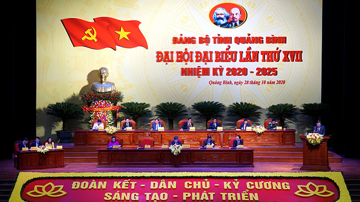 Đại hội rút ngắn xuống còn 1 ngày để tập trung ứng phó và khắc phục hậu quả bão lũ Nhiệm kỳ mới, Đảng bộ tỉnh Quảng Bình xác định những định hướng, mục tiêu cơ bản để xây dựng những nhiệm vụ, giải pháp quan trọng trong giai đoạn 2020 - 2025. Cụ thể: Về mục tiêu tổng quát: “Tăng cường xây dựng Đảng bộ trong sạch, vững mạnh; bảo đảm quốc phòng, an ninh; phát huy sức mạnh đoàn kết toàn dân, đổi mới sáng tạo, huy động mọi nguồn lực, chủ động hội nhập quốc tế, phấn đấu đưa Quảng Bình trở thành tỉnh phát triển khá trong khu vực Bắc Trung Bộ”.