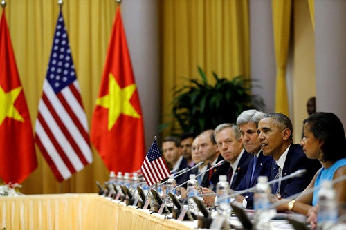"Chúng ta đến đây, như một biểu tượng của mối quan hệ được đẩy mạnh trong vài thập kỷ qua", AFP dẫn lời Tổng thống Mỹ Obama nói với Chủ tịch nước Trần Đại Quang.