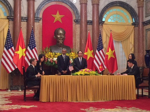 Lãnh đạo Mỹ và Việt Nam sau đó chứng kiến lễ ký kết một số văn bản.