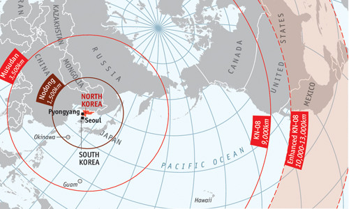 Các siêu đô thị ở xa hơn như New York và thủ đô Washington, cách Triều Tiên khoảng 11.000 km, có thể hứng đòn tấn công hạt nhân sau 38-39 phút từ khi Bình Nhưỡng khai hỏa tên lửa.