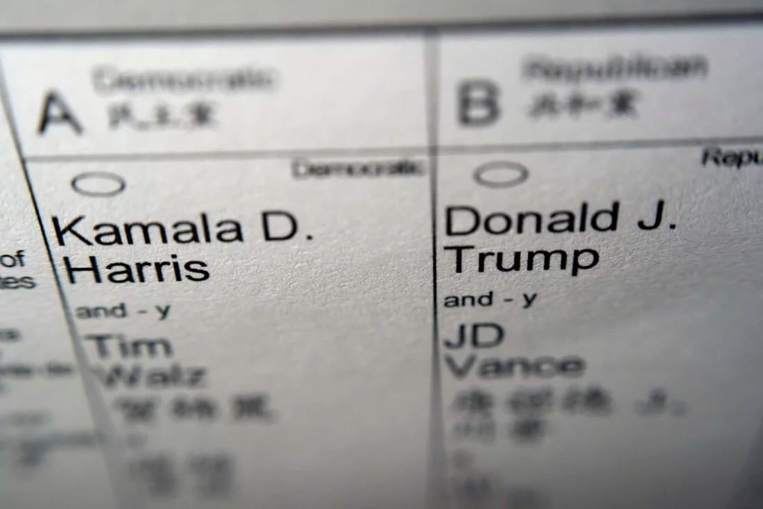 | Ông Trump và bà Harris giành số phiếu bằng nhau với mỗi người ba phiếu. Ảnh: AP |