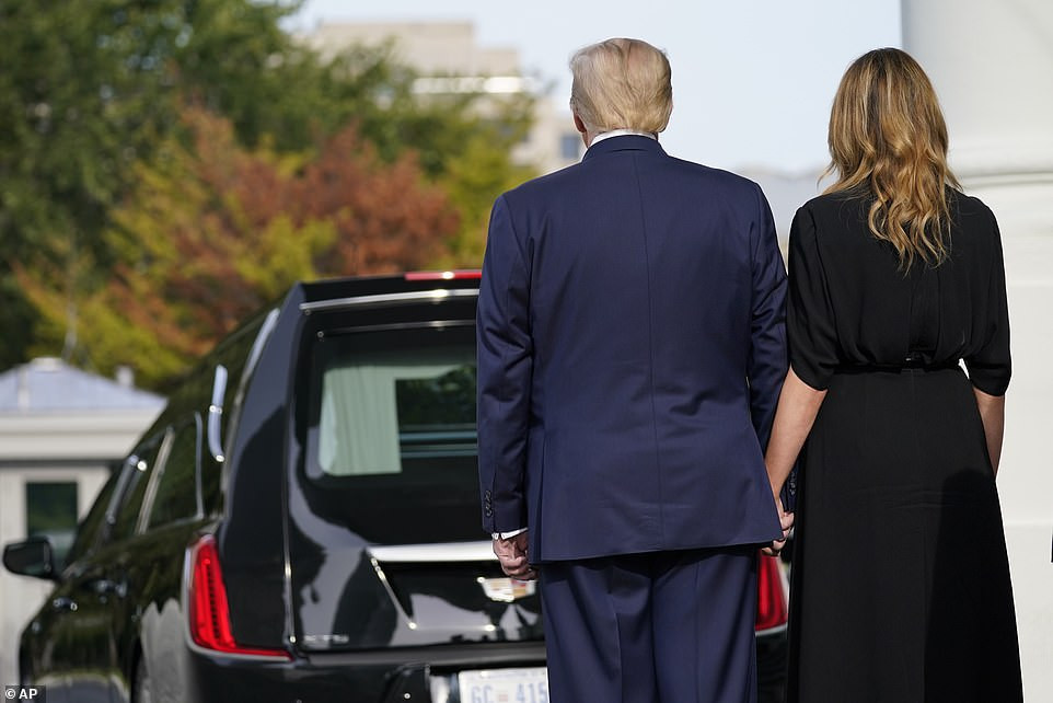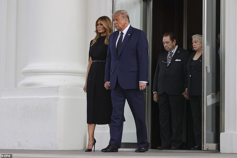 Khi đưa quan tài em trai Robert rời khỏi phòng làm lễ, ông Trump không khỏi xúc động và được phu nhân Melania nắm chặt tay an ủi.