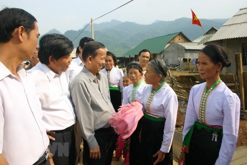 Phó Thủ tướng Trương Vĩnh Trọng thăm hỏi đồng bào dân tộc bản tái định cư Thèn Chồ, khu tái định cư Huổi Luông (thị trấn Phong Thổ) trong chuyến thăm, làm việc tại tỉnh Lai Châu từ ngày 13-15/10/2007. (Ảnh: Mạnh Hà/TTXVN)