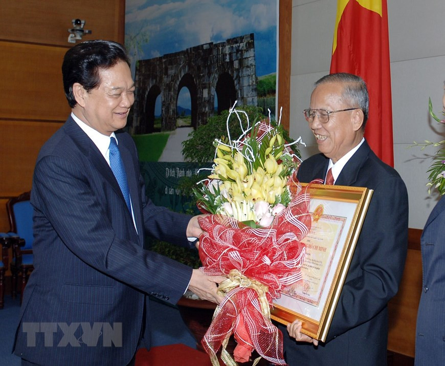 Thủ tướng Nguyễn Tấn Dũng trao Huân chương Hồ Chí Minh của Chủ tịch nước tặng ông Trương Vĩnh Trọng, ngày 29/9/2014, tại Hà Nội. (Ảnh: Đức Tám/TTXVN)