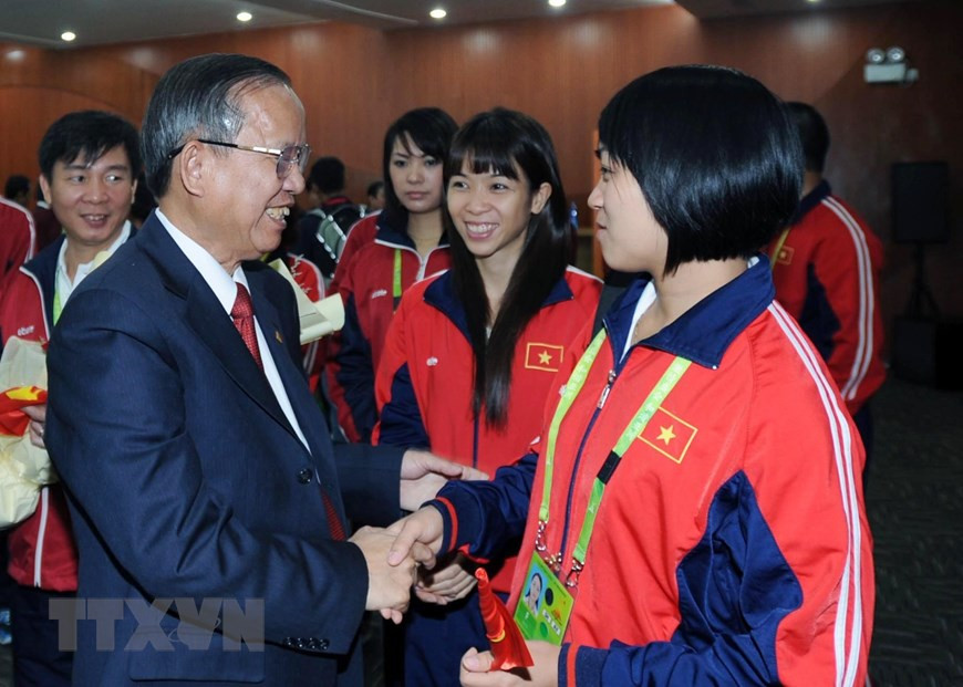 Ngày 13/11/2010, ông Trương Vĩnh Trọng, Ủy viên Bộ Chính trị, Bí thư Trung ương Đảng, Phó Thủ tướng Chính phủ đến làng vận động viên (Quảng Châu, Trung Quốc) thăm và động viên các vận động viên của Đoàn thể thao Việt Nam tham dự ASIAD 16. (Ảnh: Quốc Khánh/TTXVN)