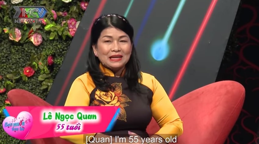 Trước khi tấm màn ngăn cách được mở ra, được hỏi liệu có mong muốn gì về nửa kia hay không, bà Quan nói: “Không cần ngoại hình vì vốn bây giờ bản thân mình cũng không còn sắc vóc gì cả, nhưng ít nhất phải dễ nhìn và vững chãi để khi mình ngã thì anh ấy nâng”.