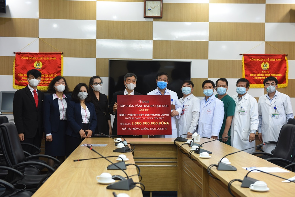 Trong khi đó, Tập đoàn Vàng bạc Đá quý DOJI là một doanh nghiệp đi đầu và luôn đề cao trách nhiệm của doanh nghiệp với xã hội. Tập đoàn đã trao tặng 4 tỷ đồng để mua dụng cụ y tế, quần áo bảo hộ, Kit xét nghiệm và tiền mặt cho Viện Vệ sinh Dịch tễ Trung ương và Bệnh viện Bệnh nhiệt đới Trung ương. “Việc đóng góp 4 tỷ đồng để mua dụng cụ y tế, Kit xét nghiệm và tiền mặt thể hiện mong muốn của Tập đoàn Vàng bạc Đá quý DOJI sát cánh cùng ngành y tế, không để bất cứ người dân nào bị bỏ lại phía sau trong cuộc chiến chống dịch bệnh”, Ông Dương Anh Tuấn – Phó TGĐ Tập đoàn Vàng bạc Đá quý DOJI cho biết.
