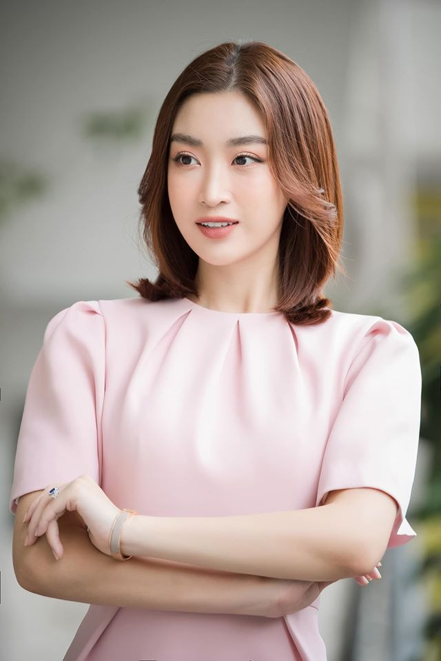 Hoa hậu Mỹ Linh dịu dàng, thanh lịch với tông màu hồng pastel.
