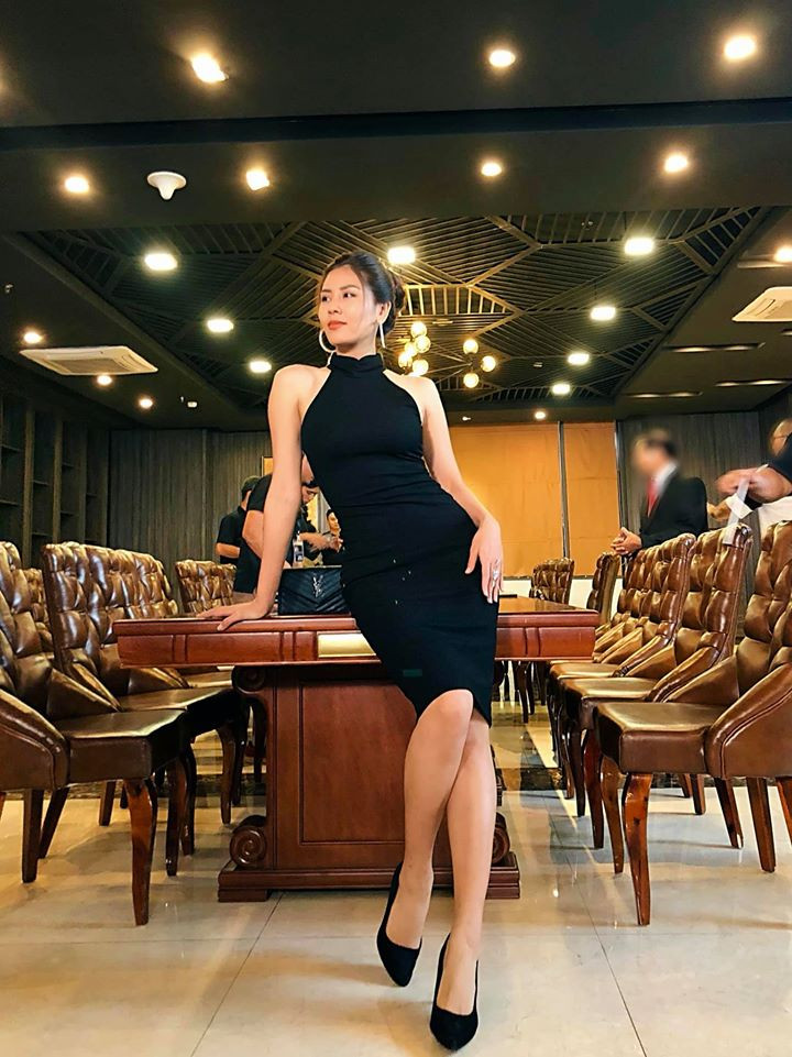 Người đẹp biển Nguyễn Thị Loan diện váy đen bó sát quyến rũ trên trường quay phim mới.