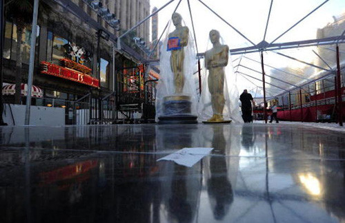 Công nhân đã phải căng bạt thành lều phía trên thảm đỏ để bảo vệ các ngôi sao khỏi cơn mưa, còn những người khác phải dùng dụng cụ ép nước ra khỏi thảm đỏ. Những bức tượng vàng Oscar được bao bọc thành những cột lớn để tránh bị mưa bão thổi bay.