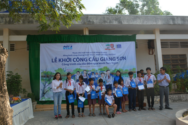 Phát biểu tại lễ khởi công, ông Đoàn Sĩ Hiền, Phó chủ tịch Tập đoàn Dược phẩm Merap - nhà sản xuất và phân phối nhãn hàng thuốc nhỏ mắt Osla, cho biết: “Trong nhiều năm qua, thương hiệu thuốc nhỏ mắt Osla luôn kiên trì với sứ mệnh đồng hành cùng học sinh và các bạn trẻ thắp sáng ước mơ. Năm 2016, Osla đã phối hợp cùng TW Hội Sinh viên Việt Nam trao tặng vé xe và học bổng trị giá 800 triệu đồng cho các em sinh viên có hoàn cảnh khó khăn đỗ đại học trên khắp cả nước. Năm nay, chúng tôi quyết định các khoản tài trợ học đường sẽ mang tính chất lâu dài, bền vững hơn, với việc chung tay với CLB Bóng đá HAGL và người dân địa phương nơi đây khởi công xây dựng cầu Giang Sơn để nâng bước các em đến trường”.