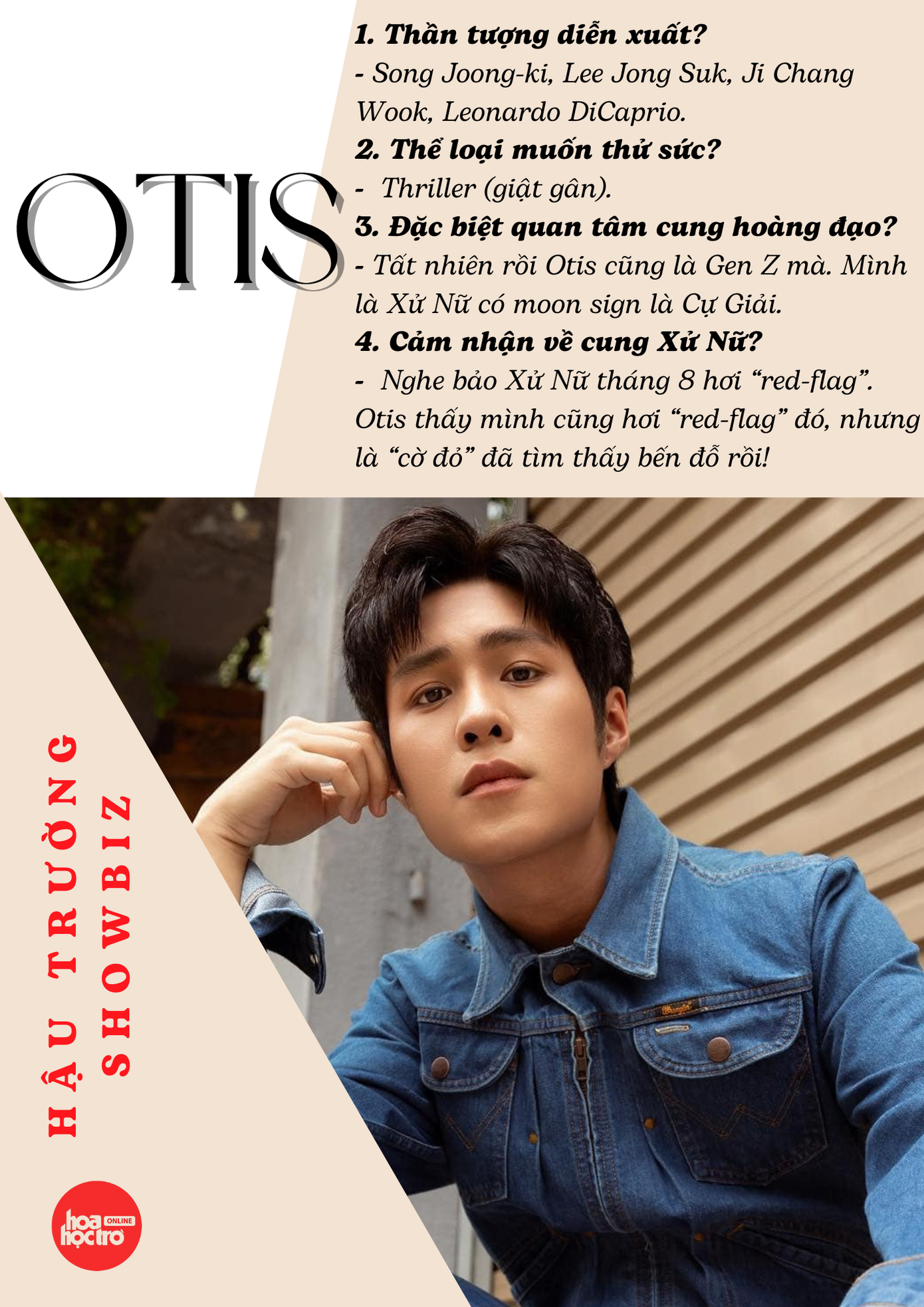 Thật sự Otis cũng đã "già", mình 27 tuổi rồi! (cười). Khi còn 17 - 18, mình may mắn "nổi" lên nhờ các vai học sinh nhưng hiện tại, Otis không thể chắc chắn được điều đó nữa. Danh xưng "soái ca học đường" là do mọi người gọi thôi, Otis không thấy mình đẹp trai mà chỉ là một người nhìn... được được.