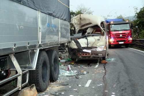 Cú tông mạnh khiến đầu xe khách biến dạng, 27 hành khách la hét thất thanh. Nhiều người dân phải dùng nhiều vật dụng phá cửa xe, đưa các nạn nhân ra ngoài. Bà Tô Thị Thiêm (70 tuổi, quê Đồng Nai) chết tại chỗ, 5 người khác bị thương nặng.