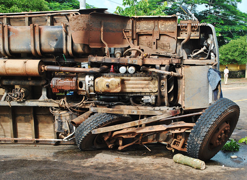 Trước đó, khoảng 21h ngày 7/8, tài xế Trịnh Văn Đồng (34 tuổi, ngụ huyện Châu Đức) lái xe tải 15 tấn chở đầy củi cao su. Đến trước UBND xã Suối Nghệ, ôtô bị bể vỏ trước, gãy trục, cả hai bánh trước văng ra ngoài khiến xe lật nhào nằm chắn ngang đường. Ba người ngồi trước cabin gồm cả tài xế chỉ bị trầy xướt nhẹ.