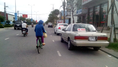 Đây là kiểu rao bán xe lạ từ trước và sau Tết nguyên đán 2014 đến nay. Không chỉ xế hộp, cả xe tải cũng được xếp hàng trên các vỉa hè chờ bán.