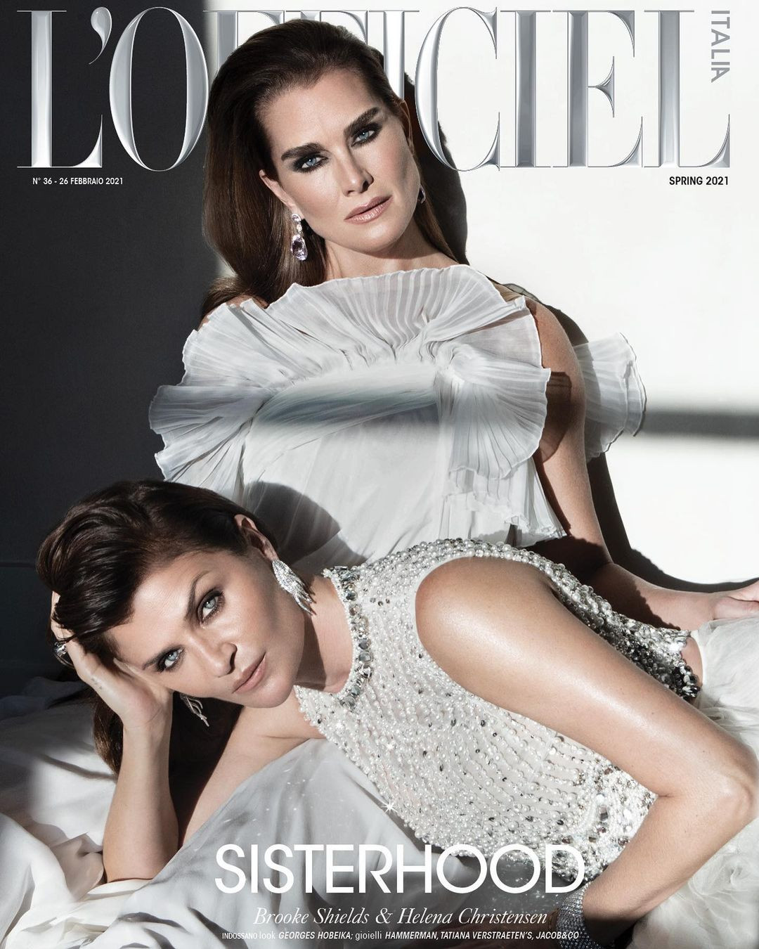 Cùng xuất hiện trên trang bìa tạp chí L'Officiel Ý số mới còn có minh tinh đình đám một thời Brooke Shields và người mẫu Đan Mạch Helena Christensen.