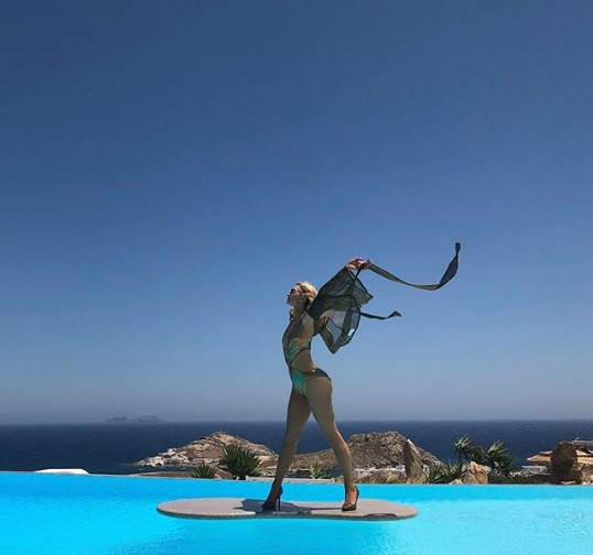 Cô nàng khoe dáng tắm nắng ở Mykonos, Hy Lạp - nơi nghỉ mát đang được nhiều sao yêu thích trong mùa hè năm nay.