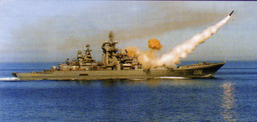 Vũ khí tấn công chủ đạo của "Peter Đại đế" là 20 tên lửa hành trình diệt hạm P-700 Granit, có tầm bắn 625 km, mang theo đầu đạn nổ mạnh (HE) 750 kg hoặc đầu đạn nhiệt hạch có sức mạnh tương đương 25 quả bom nguyên tử ném xuống Nagasaki. Tên lửa có tốc độ bay lên tới 2000-3000 km/h, tùy thuộc vào độ cao.