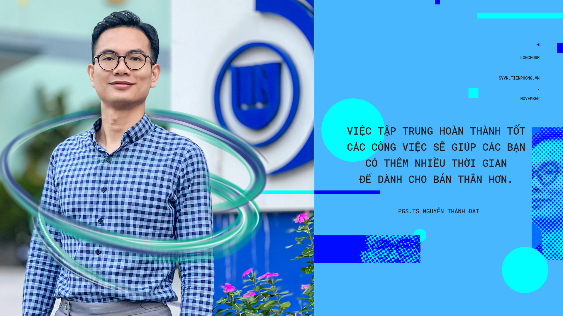 PGS.TS Nguyễn Thành Đạt: Việc duy trì tập trung trong sinh hoạt hằng ngày và quản lý tốt thời gian là một thách thức lớn đối với nhiều người, không chỉ là bạn sinh viên. Tôi xin chia sẻ một số kinh nghiệm bản thân để cải thiện vấn đề này: Thứ nhất, cần xác định rõ những việc “cần” và “bắt buộc” hoàn thành. Những việc này dù có trì hoãn thì các bạn vẫn phải thực hiện, vì vậy nên dành thời gian để hoàn thành chúng sớm. Thời gian không tự sinh ra, vì vậy nếu đằng nào cũng mất thời gian để làm thì các bạn nên chấp nhận và thực hiện một cách nghiêm túc. Tôi luôn quan niệm nếu bản thân dành thời gian và làm tốt một việc, giảm thiểu các sai sót thì sẽ không phải mất thời gian để chỉnh sửa, làm lại. Chẳng hạn, khi viết một bài luận, nếu các bạn tập trung viết tốt theo yêu cầu của giảng viên hướng dẫn thì các bạn sẽ không phải mất thời gian để viết lại. Như vậy chính việc tập trung hoàn thành tốt các công việc sẽ giúp các bạn có thêm nhiều thời gian để dành cho bản thân hơn.