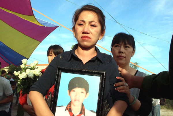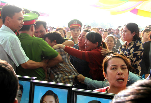 Nỗi đau hằn lên gương mặt thân nhân người bị hại.