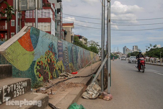 Một đoạn tranh gốm sứ trên đường Âu Cơ đã bị đục vỡ mảng lớn.