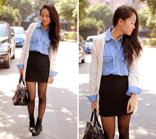 Các nàng có thể kết hợp với áo dáng peplum, áo thun len dài tay hoặc sơmi cùng với cardigan vừa nhẹ nhàng vừa nữ tính.