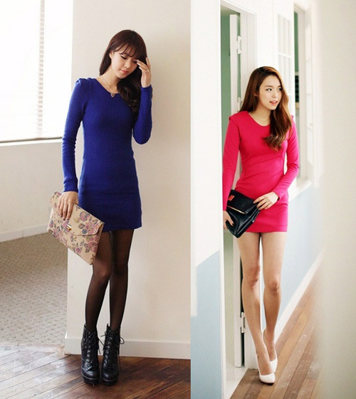 Cũng là chất liệu len nhưng các nàng có thể khoe vẻ đẹp hình thể nhờ những chiếc váy liền dáng body hoặc chân váy len xẻ đùi.