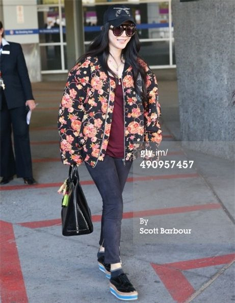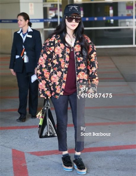 Trang phục ở sân bay, cô để lộ đôi chân to