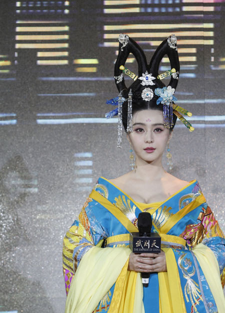 Đoàn làm phim Võ Tắc Thiên do Phạm Băng Băng đóng vai chính kiêm nhà sản xuất họp báo ra mắt ở Giang Tô (Trung Quốc) hôm 13/2.