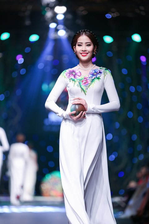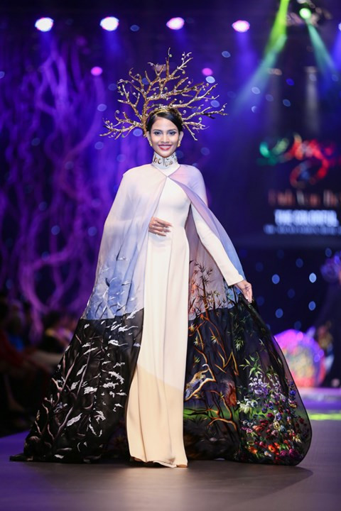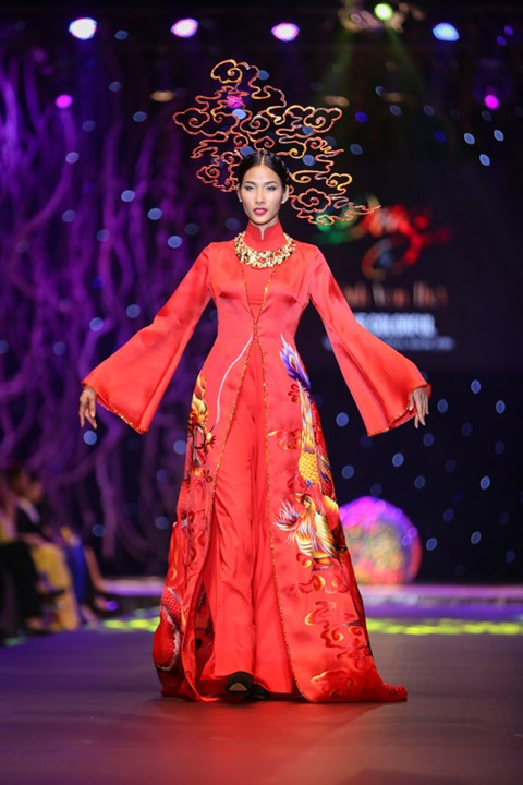 Với thần thái của một siêu mẫu hàng đầu, Trương Thị May lần lượt thể hiện những bộ trang phục đẹp mắt nhất của Nhà thiết kế Đinh Văn Thơ