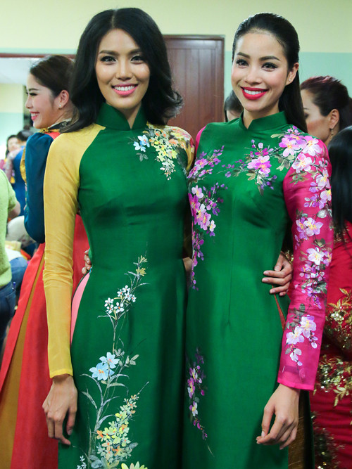 Chương trình này có sự tham gia của nhiều gương mặt trong làng hoa hậu, trong đó có Á hậu Hà Thu (trái) và Hoa khôi Nam Em.