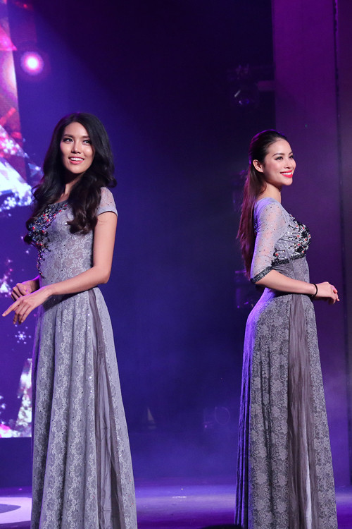 Từ trái qua: Lan Khuê, Phạm Hương, Thuý Vân... sóng bước trình diễn.