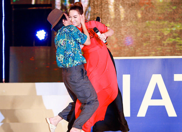 Anh ôm hôn thắm thiết ca sĩ Phi Nhung khi hội ngộ chị trên sân khấu Sóc Trăng.