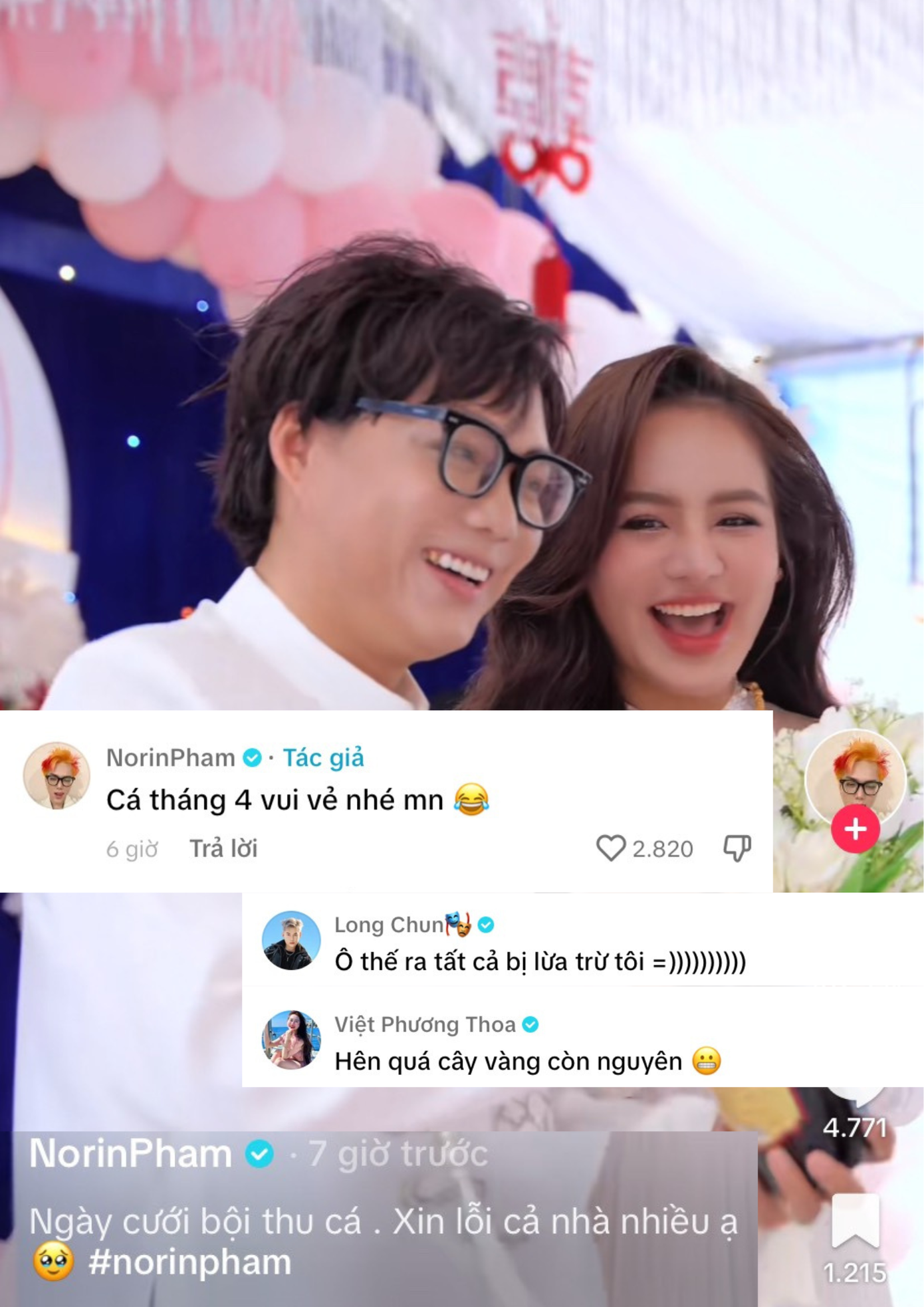 Mới đây, Phạm Thoại tiếp tục khiến netizen "chưng hửng" khi chia sẻ clip tóm tắt ngày cưới với tiêu đề: “Ngày cưới bội thu cá. Xin lỗi cả nhà nhiều ạ”. Bên dưới phần bình luận, nam TikToker còn để lại bình luận: “Cá tháng 4 vui vẻ nhé” khiến các cư dân mạng bàn tán xôn xao, người khen kẻ chê.