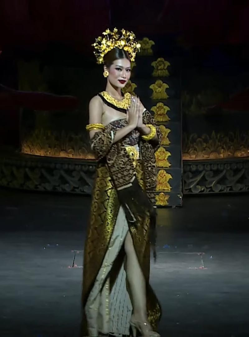 Balinese Costume Competition là phần thi đặc biệt thuộc khuôn khổ cuộc thi Miss Grand International 2022. Phần thi của các thí sinh được sắp xếp và lồng ghép vào một vở kịch kể về truyền thuyết ở Bali. Xuất hiện ở nửa cuối, Hoa hậu Thiên Ân đã “cân” đẹp trang phục truyền thống của Bali với màu son đỏ đặc trưng.