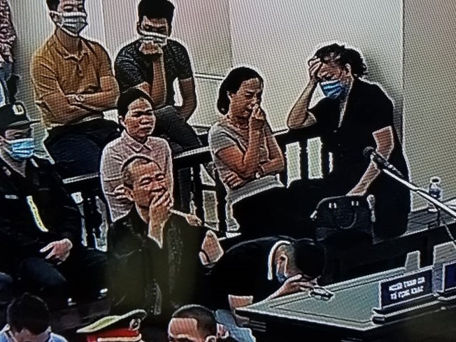 Ở phía dưới nghe luật sư nói, đại diện gia đình 3 bị hại, những ông bố, bà mẹ mất con, người vợ mất chồng ôm mặt khóc.
