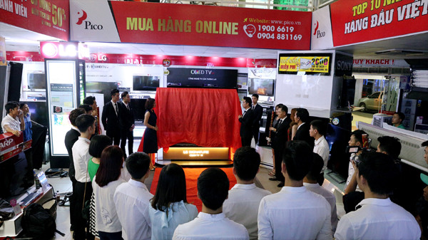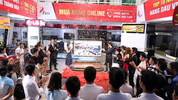 Ngay sau đó, anh cùng với lãnh đạo và nhân viên Pico trực tiếp mở hộp & trải nghiệm những tính năng đặc biệt của siêu phẩm này. Chiếc TV kích cỡ 77’’ được coi là lớn nhất trong dòng Oled với màn hình dày chỉ 2.57mm đang được trưng bày tại siêu thị Pico