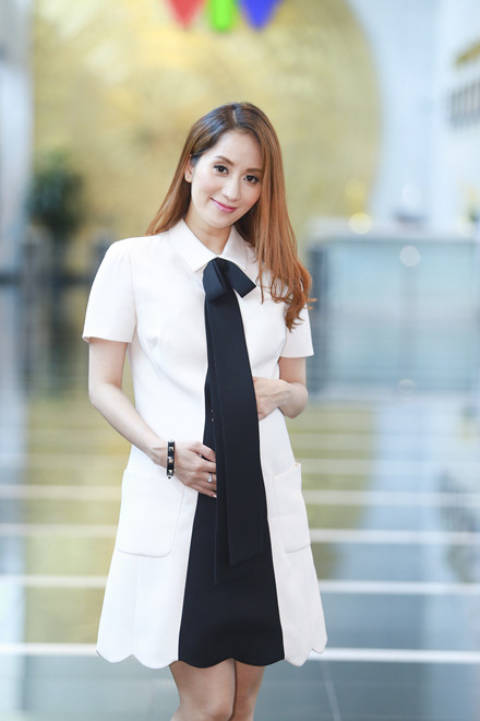 Cô diện váy của một thương hiệu thời trang nổi tiếng có giá hơn 80 triệu đồng để đi quay talkshow.
