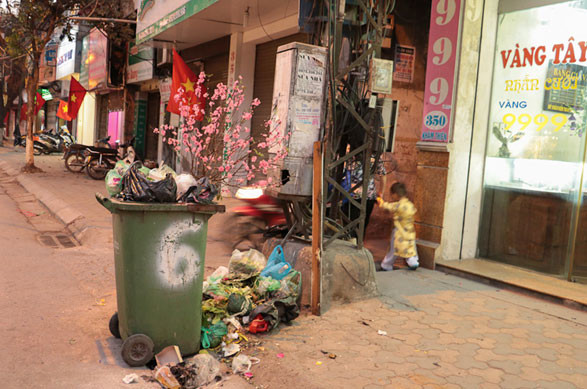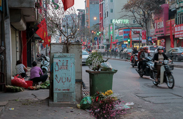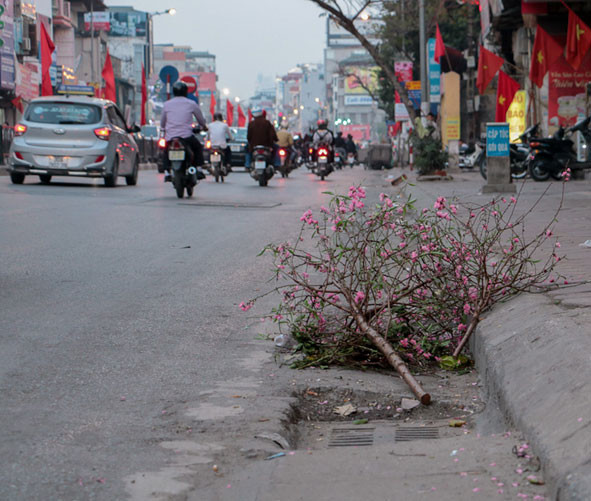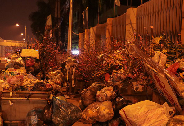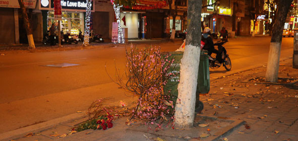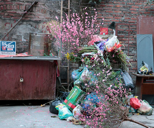 Sau kỳ nghỉ Tết dài, cuộc sống quay trở lại với quỹ đạo thường nhật, những cành đào, cây quất... cũng đã hoàn thành "nghĩa vụ" trưng Tết, trở thành những món rác bị vứt khắp nơi...