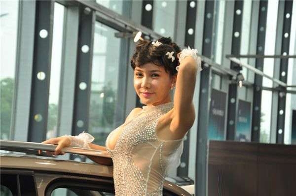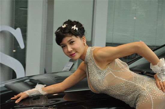 Cung Nguyệt Phi trở thành tâm điểm chú ý khi diện bộ đầm mỏng tang xuất hiện tại sự kiện quảng cáo xe hơi hôm 30/7. Nữ diễn viên phim "Tân Kim Bình Mai" ngày càng phát huy thế mạnh hở hang, thậm chí gây ồn ào hơn cả "tiền bối" Can Lộ Lộ.