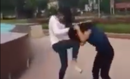 Hai nữ sinh được cho là đang học tại một trường THPT trên địa bàn huyện liên tục tát vào mặt, giật tóc và đạp vào bụng một nữ sinh THCS.