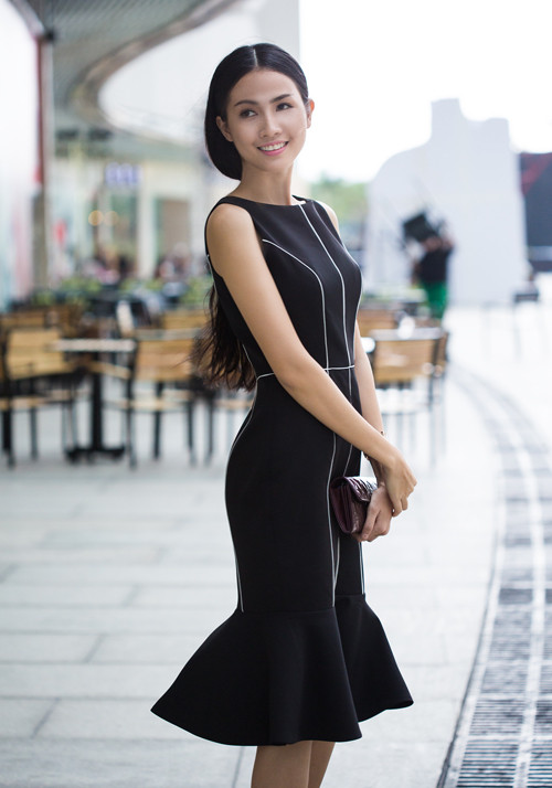 Người đẹp thích những gam màu đơn giản như đen, trắng và chỉ trang điểm nhẹ khi dạo phố.