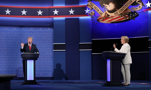 Kịch tính bắt đầu dâng trào ngay từ khi cuộc tranh luận chuẩn bị mở màn, vào thời điểm hai ứng viên tổng thống Mỹ Donald Trump và Hillary Clinton từ chối bắt tay nhau.