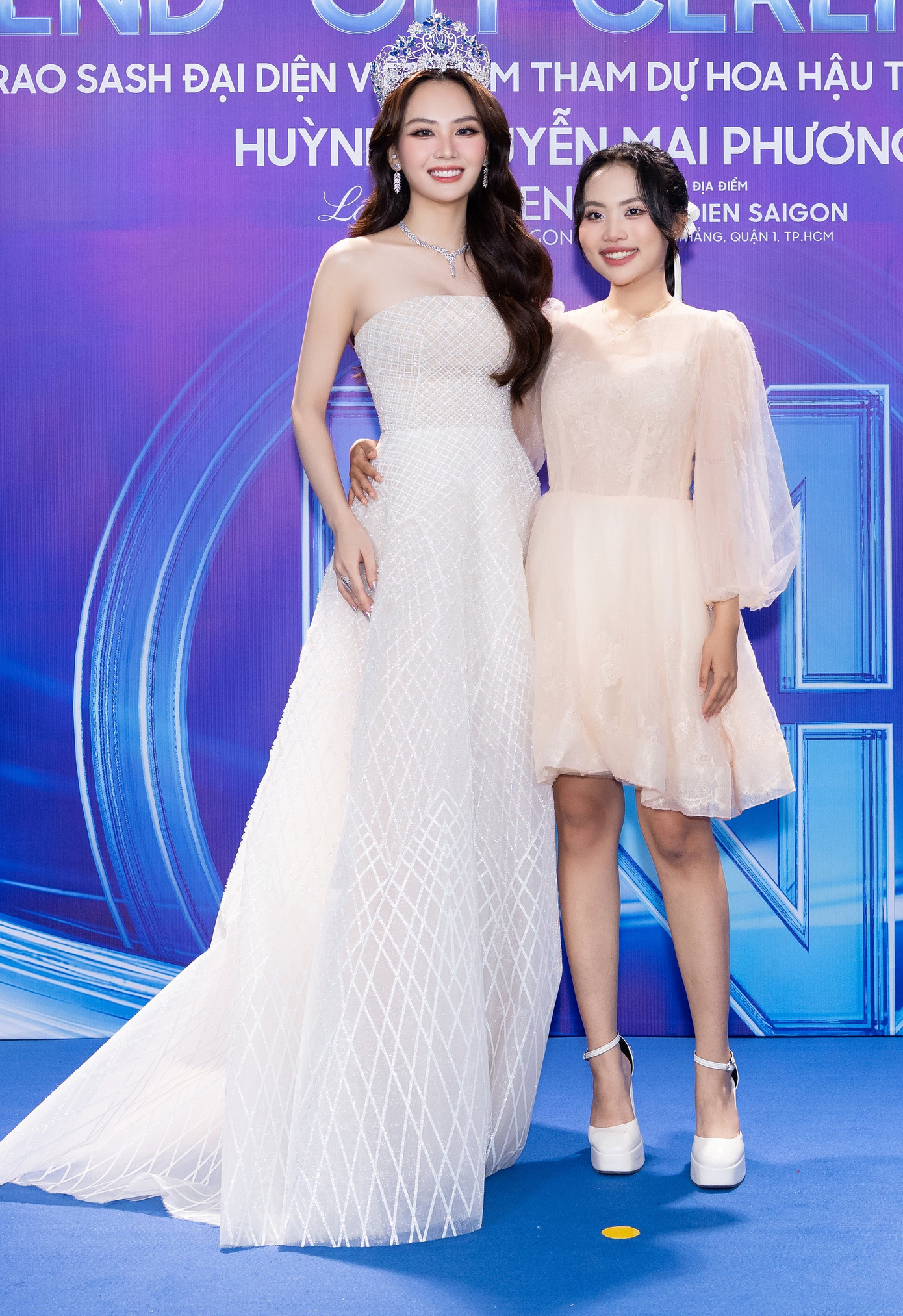 Bộ ba vô cùng thân thiết vì đã có thời gian cùng tham dự cuộc thi, cùng nhau tỏa sáng trên thảm đỏ với tổ hợp nhan sắc cực kỳ đẹp mắt. Phương Nhi chia sẻ kỷ niệm đáng nhớ nhất với Mai Phương là khoảng thời gian cả hai còn là bạn cùng phòng, hai chị em sẽ ôm chầm lấy nhau mỗi khi đối phương có tin vui, hay thậm chí còn rượt đuổi nhau khắp chung cư. Với Phương Nhi, điều đó rất dễ thương và nên được chia sẻ vào ngày vui như thế này. Trước đó, tại lễ send-off của Bảo Ngọc và Phương Nhi, Mai Phương đã luôn có mặt và ủng hộ nhiệt tình cho đàn em.